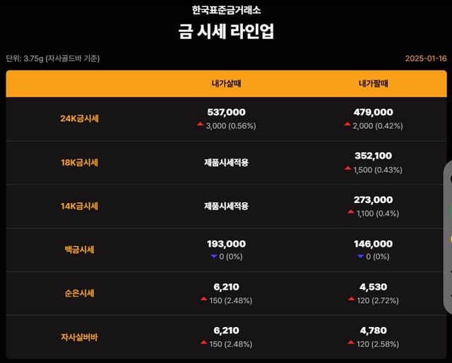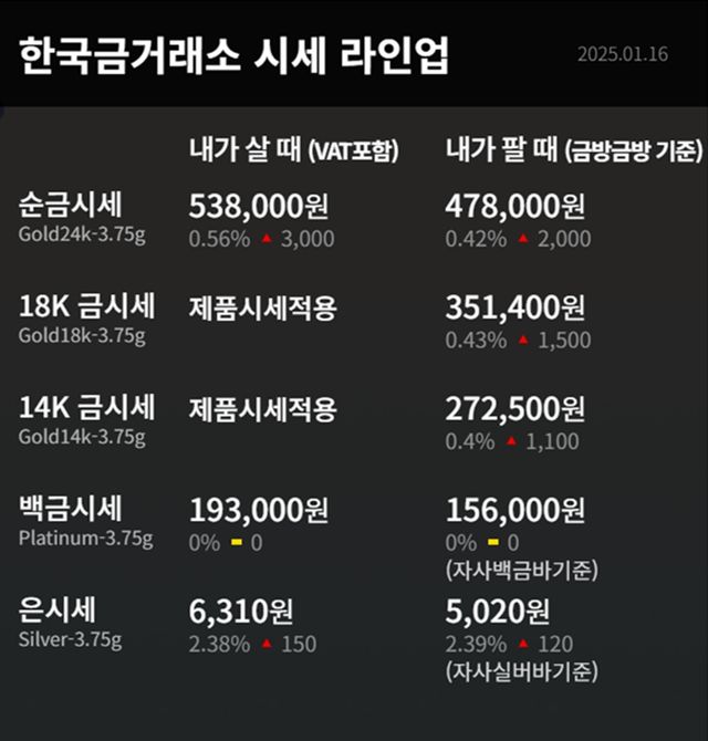 순금(24K) : 매입가 53만 8000원 / 매도가 47만 8000원