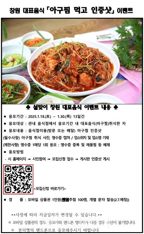 이번 이벤트는 설 명절을 맞아 창원 대표 음식인 아구찜을 홍보하고 지역 상권 활성화를 위한 것이다.