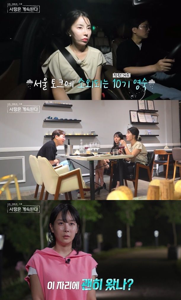 일찌감치 분위기를 치고 나가는 22기 영숙의 플러팅 스킬에 조수석에 앉은 10기 영숙은 계속 말을 잃어간다.