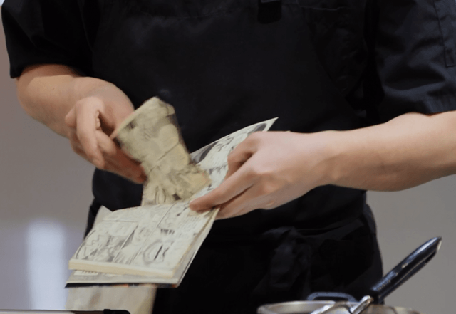 첫 라운드 부터 만화책을 가져와 찢고 만화를 보며 요리하는 모습을 보여줌
