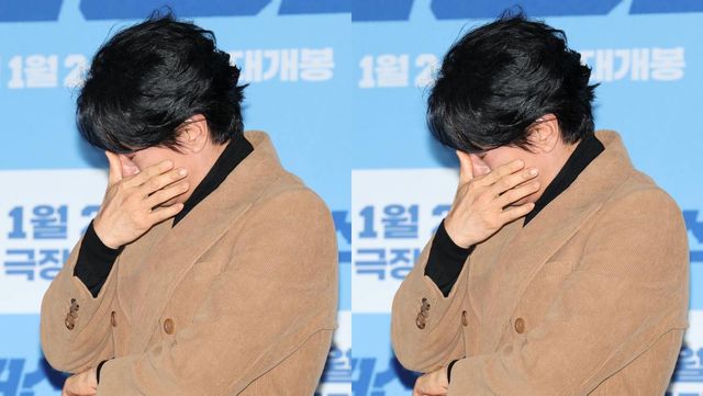 배우 신현준이 지난 13일 서울 용산구 CGV용산아이파크몰에서 열린 영화 '귀신경찰'(감독 김영준) 언론시사회에 참석해 고 김수미 생각에 눈물을 흘리고 있다. / 뉴스1