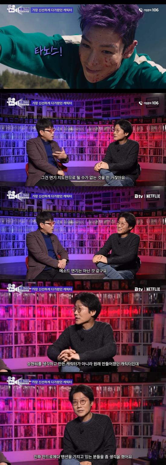 이날 황동혁 감독은 '오징어 게임2'에서 가장 신선하게 다가왔던 캐릭터에 대해 "제일 힘들기도 했고, 신선하기도 했는데"라면서 타노스를 언급했다.