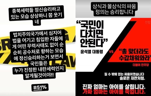 (엑스포츠뉴스 정민경 기자) 윤석열 대통령이 체포된 가운데 탄핵 반대 입장을 밝힌 스타들의 반응이 화제다.