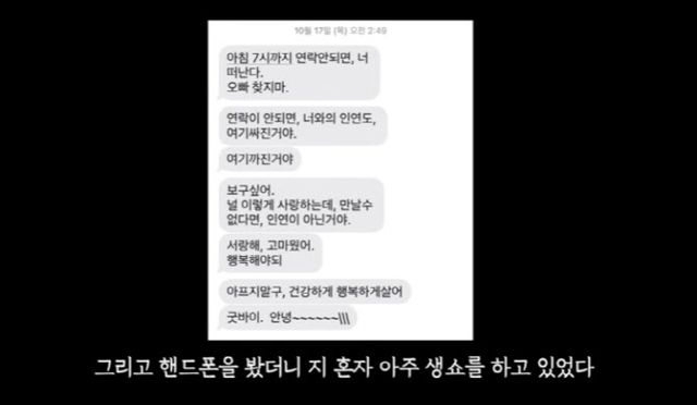 이후 집을 내놓은 A씨는 새벽 시간에 집주인에게 온 문자 메시지를 보고 놀랐다. 집주인은 “아침 7시까지 연락 안 되면 너 떠난다. 오빠 찾지 마”, “연락이 안 되면 너와의 인연도 여기까지인 거야”, “보고싶어. 널 이렇게 사랑하는데 만날 수 없다면 인연이 아닌 거야” 는 등 메시지를 보냈다.