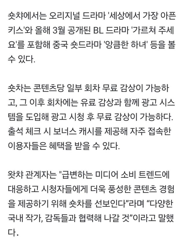 숏폼 OTT앱 숏챠 출시 ㄷㄷ