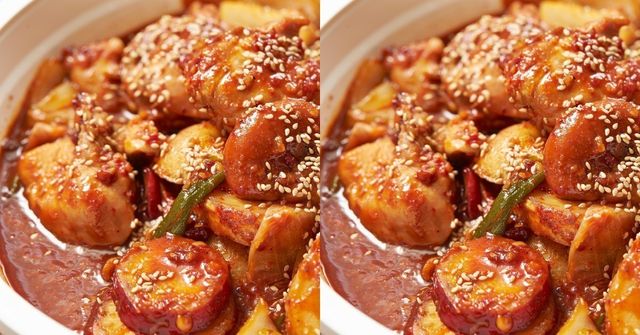 뜨겁게 끓여지는 솥에서 육즙 가득한 닭고기와 감자, 양파, 대파 등이 함께 어우러져 칼칼하면서도 구수한 맛을 자아낸다. 고추장과 고춧가루가 조화를 이루어 매콤한 맛이 입안 가득 퍼진다.
