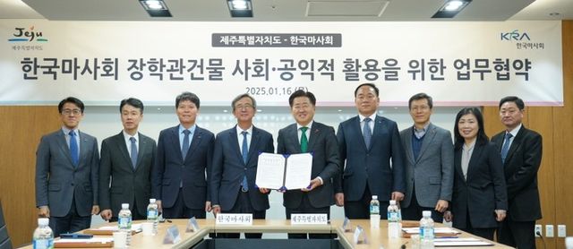 [파이낸셜경제=김예빈 기자] 제주특별자치도가 한국마사회와 서울 용산구 소재 마사회 장학관 건물의 공익적 활용을 위한 업무협약을 맺었다.