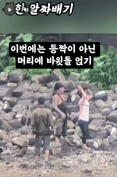 과감한 스킨쉽(?)을 받고 있는 북한 여성