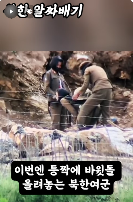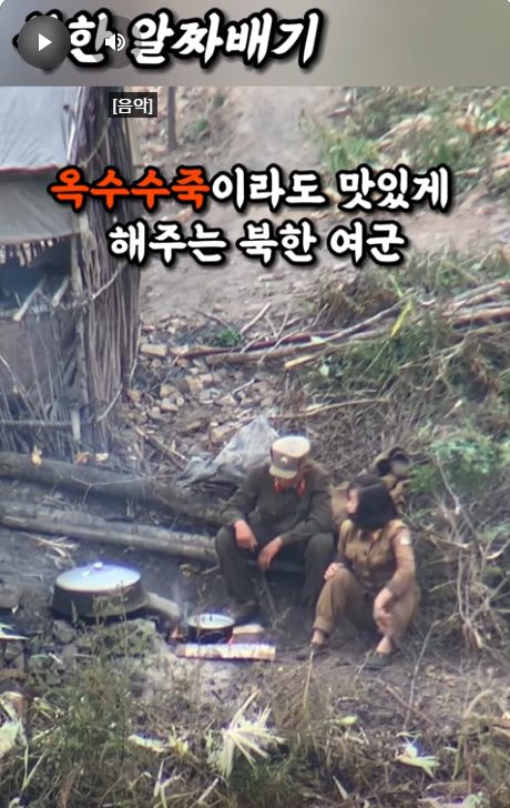 남자 군인들한테 옥수수죽 해주는 북한 여군