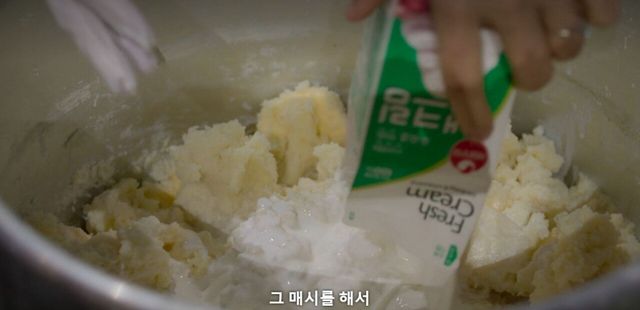 큰통안에 있는 감자 전부 생크림 우유 넣어서 하얗게 만들어버림