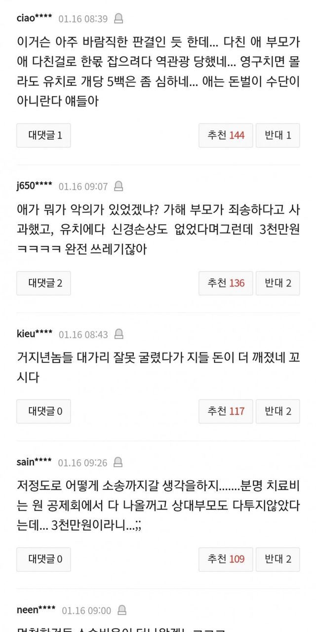 어린이집에서 친구 밀쳐 치아 부러뜨린 4살 부모에 배상 판정