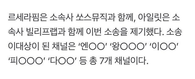 나머진 급하게 르세라핌 아일릿 영상 삭제중인 채널도 있지만 이미 고소 진행 대상들