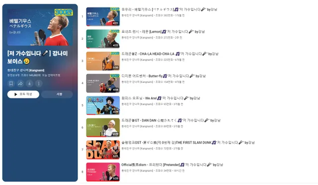 노래 영상으로만 봐도 8개 영상으로 천만은 가볍게 넘기는 조회수가 보인다