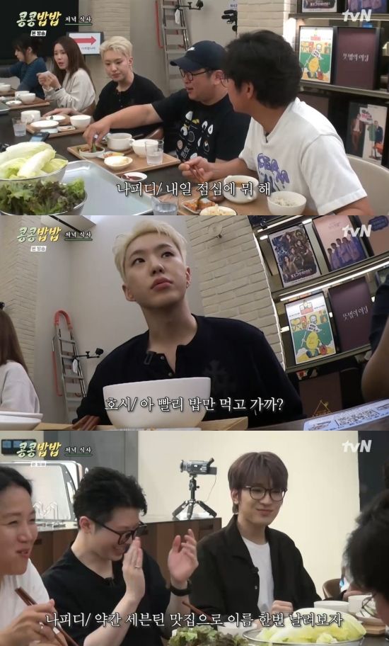 15일 방송된 tvN '콩 심은 데 콩 나고 밥 먹으면 밥심 난다'(이하 '콩콩밥밥')에서는 호시, 원우, 우지가 구내식당에 방문한 장면이 전파를 탔다.