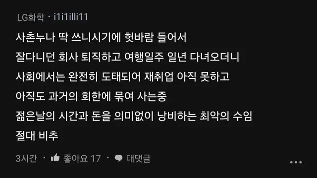 20후 여자인데 퇴사하고 3년 해외경험 하고싶다는 블라인