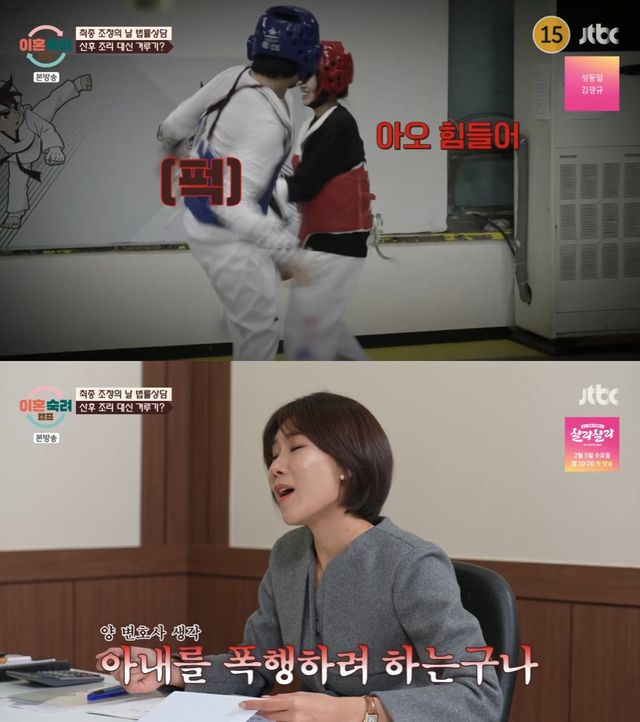 "아프다고 하면 네가 스트레칭 안했다고 운동하라고 한다"는 아내에게 변호사는 "남편이 대련이라는 포장지로 아내를 폭행하려 하는구나 생각했다"고 고백했다.