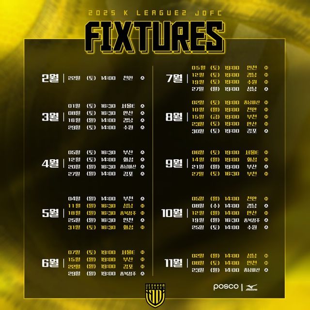 [인터풋볼] 신동훈 기자 = 전남 드래곤즈의 2025시즌 K리그2 일정이 확정되었다.