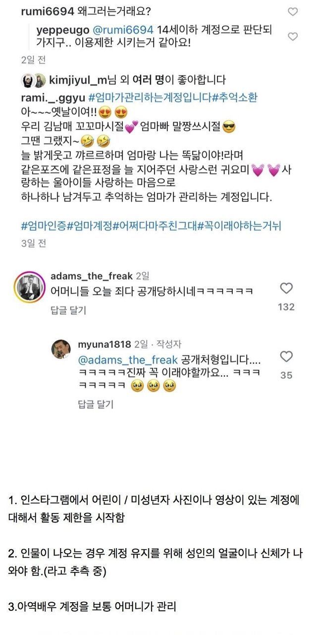 갠적으로 어린이들 sns 제한거는건 좋은 방향이라 생각함. 아역배우 계정이라고 하니 또 애매하긴한데.. 난 애들 사진 함부로 커뮤든 sns든 업로드 하는것도 좀 자제해야될거 같다고 느껴서. 무서운 세상임.