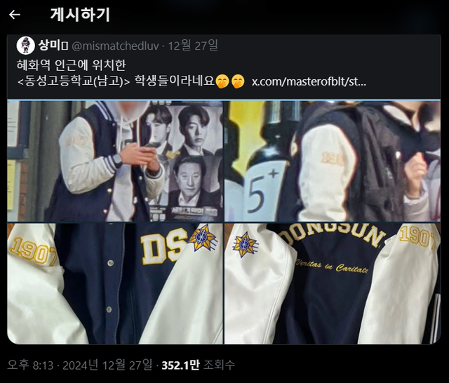 그걸 본 동덕여대 시위대가 그 남학생들 사진찍고 + 신상파서 + 트위터에 모자이크도 없이 박제해버림