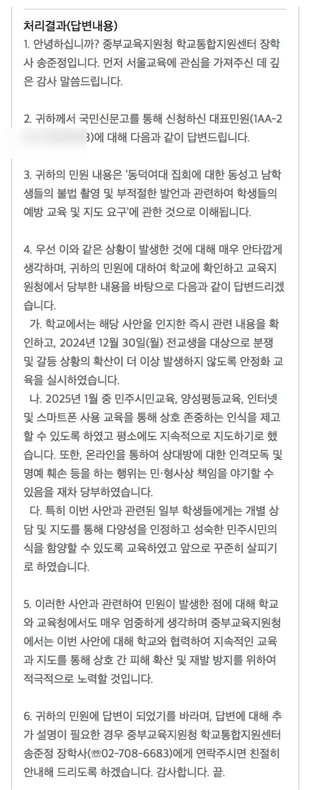 잘못으로 따지면 동덕여대 측이 더 잘못한거임