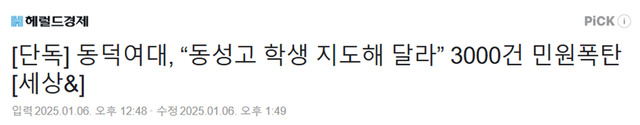 잘못은 동덕여대가 하고, 매는 동성고가 맞음