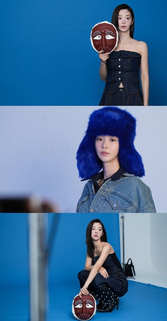 이주빈은 파란 털모자를 활용해 강렬한 인상을 남긴 스타일링부터, 기품이 넘치는 실크 드레스, 데님 룩 등의 의상과 가면 소품을 자유자재로 활용하며 트렌디하게 소화했다.