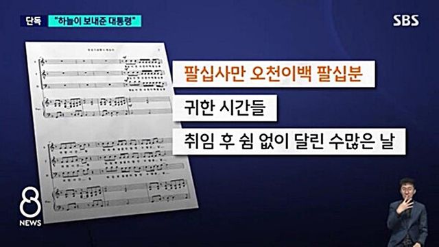 윤석열 대통령을 찬양하는 내용이 담긴 헌정곡 악보. / SBS 뉴스 보도 화면