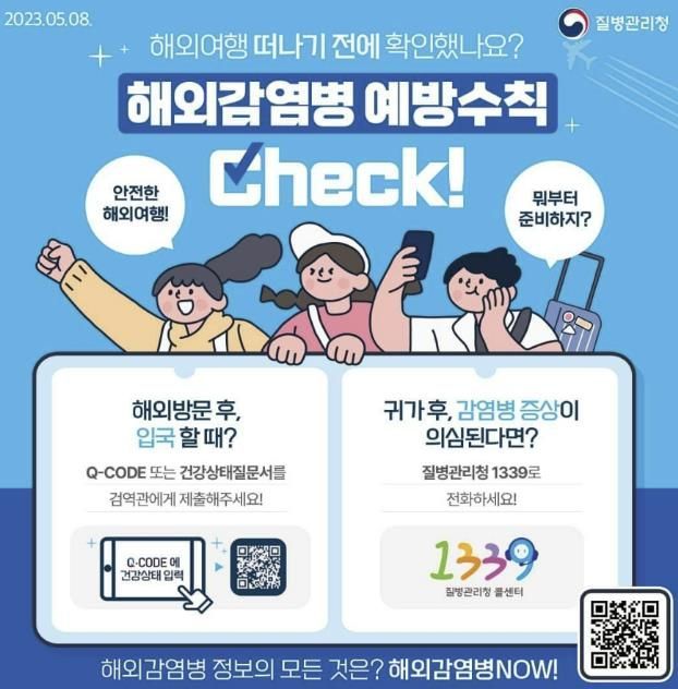 해외여행 전에는 질병관리청 ‘해외감염병 NOW’ 홈페이지에서 국가별 주의해야 할 감염병 정보와 예방 백신이 있는 감염병을 확인하고 예방약과 예방 물품을 챙겨야 한다. 또한, 필요한 예방접종이 있다면 최소 2주 전에 완료해야 한다.