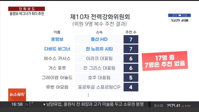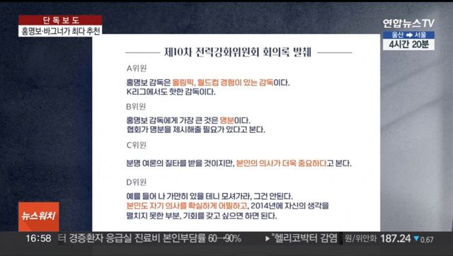 이 회의에서 17명의 후보 중 홍명보, 다비드 바그너 감독이 가장 많은 추천을 받았던 걸로 나타났습니다.