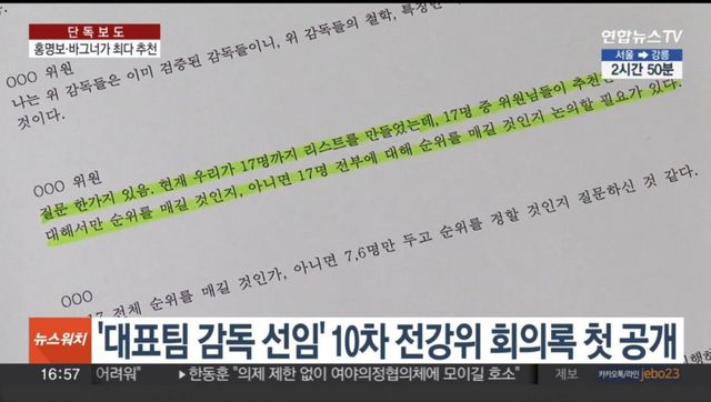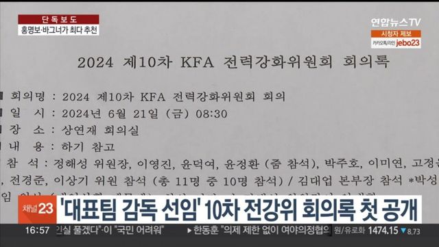 축구 국가대표팀 감독 선임 논란과 관련해 최종 후보 5명을 추린 대한축구협회 전력강화위원회 10차 회의록이 처음 공개됐습니다.