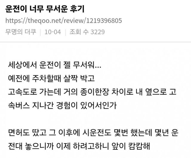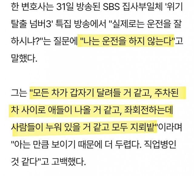 한국에서 한문철보다 운전 잘 아는 고수가 몇이나 있을까 싶은데도 운전 안 하는 이유가 ‘무서워서’