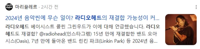 오아시스 린킨파크 복귀, 라디오헤드 복귀각 재는중
