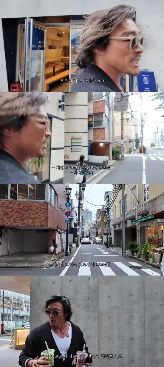 그러다가 다시금 어딘가를 보면서 인사한 뒤 "갔어 갔어. 포르쉐 타고 다니잖아. 조금 전에 지나갔잖아"라고 말하며 아내가 지나간 길을 가리켰다.