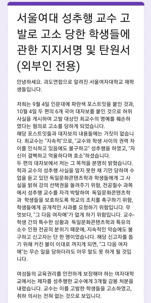 고소 당해서 1인 시위하는데 아무도 안도와줘서 눈물난다고 함..