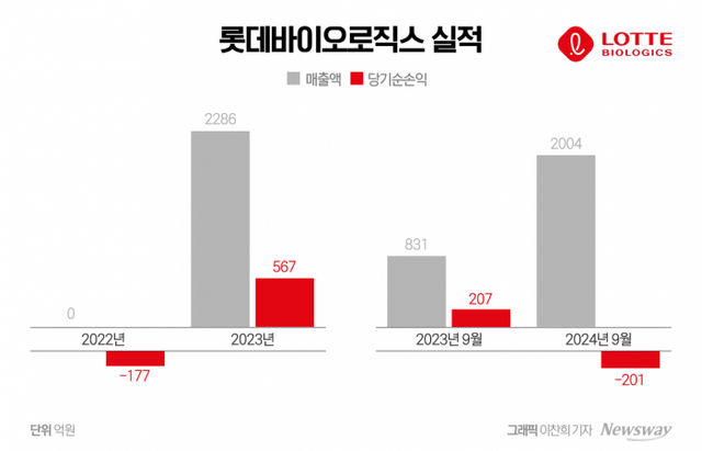 롯데바이오는 미국 시러큐스 공장 인수 이후 꾸준히 매출을 내고 있다. 작년 3분기 누적 매출액은 2004억원으로, 전년 1728억원 대비 약 16% 증가했다.