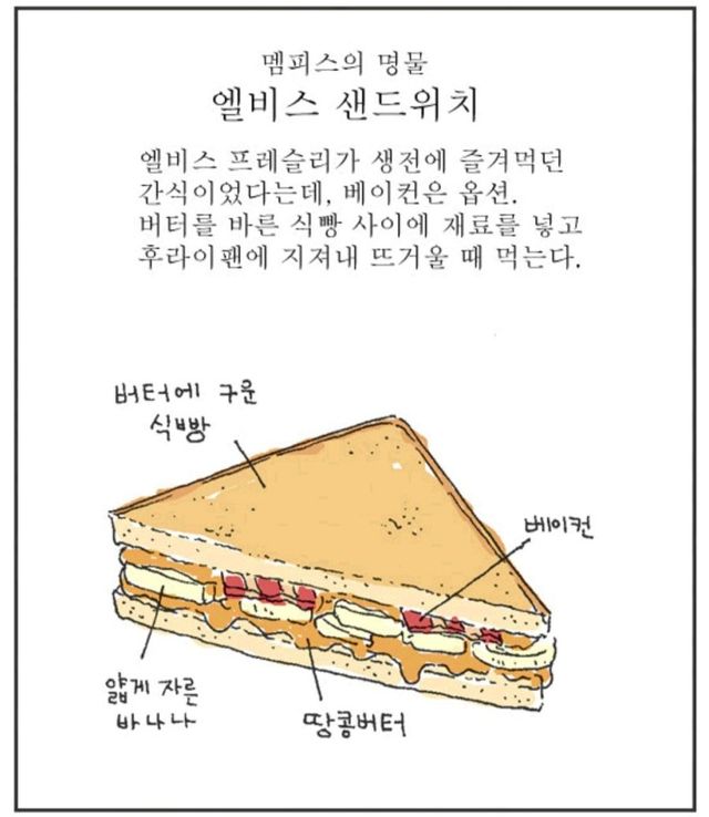 끼워 버터에 지진 피넛버터 바나나베이컨 샌드위치라고도 불렸죠