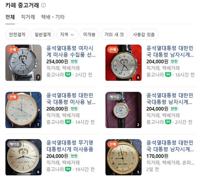 중고 거래 플랫폼에선 시계 외에도 우표, 벽시계, 머그잔 등 윤 대통령의 다양한 굿즈들이 활발히 거래 중이다.