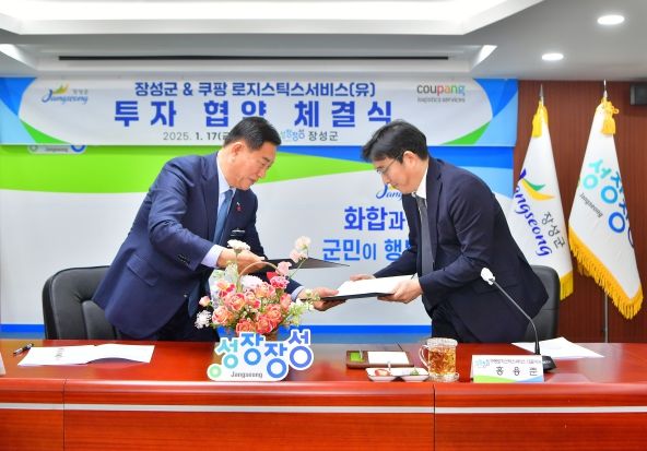 [파이낸셜경제=김예빈 기자] 장성군이 새해 고용 창출과 경제 활성화의 신호탄을 쐈다. 군은 17일 군청 상황실에서 쿠팡로지스틱스서비스 유한회사와 ‘장성 서브허브’ 신설 투자협약을 체결했다. 김한종 장성군수, 홍용준 CLS 대표, 이개호 국회의원 등 관계자 10여 명이 협약식에 참석했다.