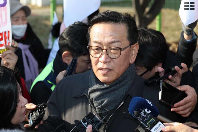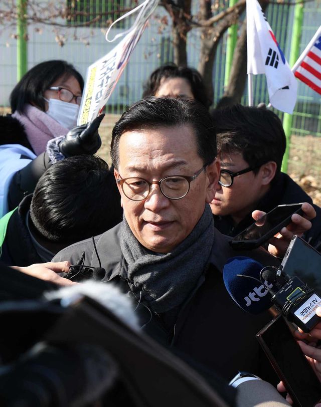 윤석열 대통령 측 석동현 변호사가 17일 오후 경기 의왕시 서울구치소 앞에서 윤석열 대통령 접견을 마치고 취재진의 질문에 답하고 있다. / 뉴스1
