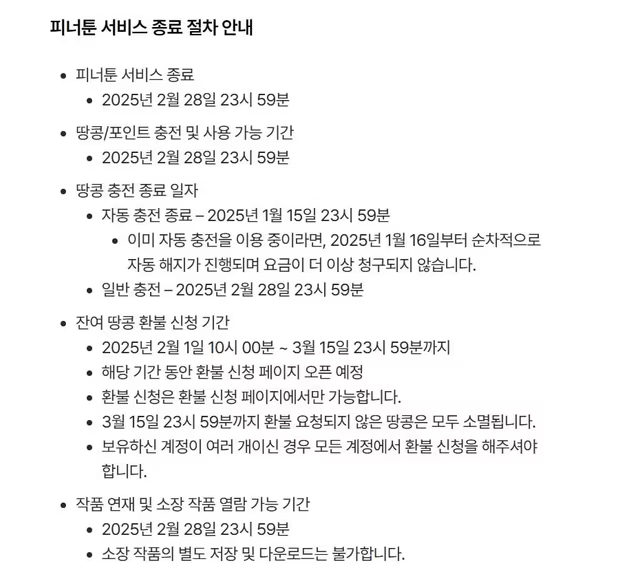 16일 피너툰은 공식 엑스(X·옛 트위터) 계정을 통해 "2월 28일부로 서비스를 종료하게 됐다"고 밝혔다.