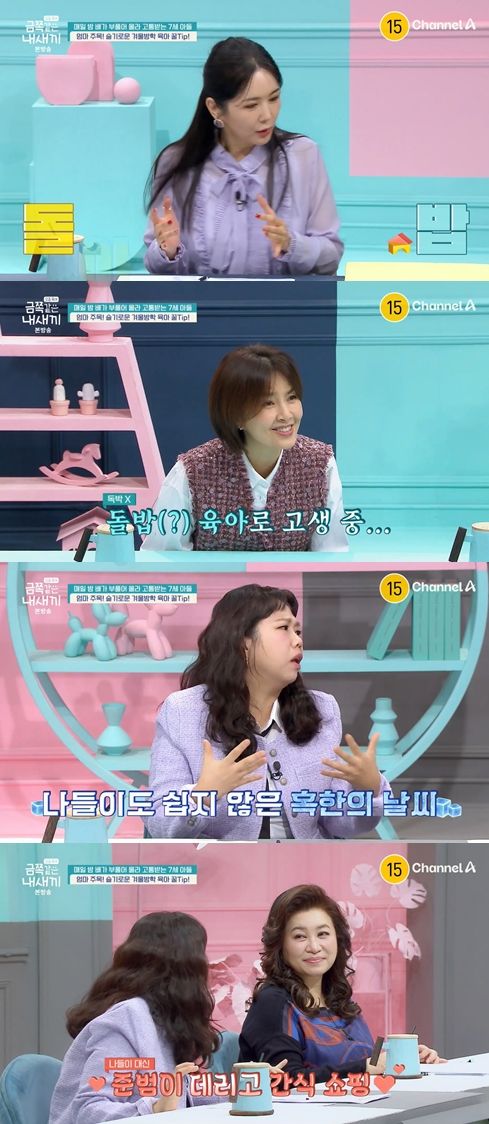정영란은 "돌밥(돌아서면 밥)이다. 그렇게 밥밥밥 거린다"라며 힘들다고 전했다. 이에 신애라는 "독박하다가 돌밥하게 되는 거구나"라고 호응했다.