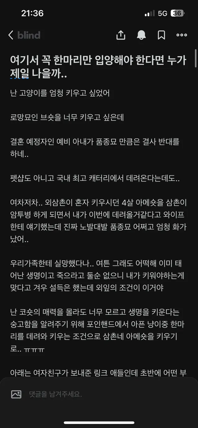 (블라인드)고양이때문에 파혼직전