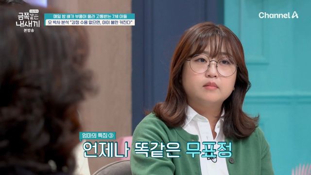 애걸복걸하는 금쪽이를 시종일관 무심하게 대했던 엄마. 이에 오은영은 "엄마의 말수가 굉장히 적다. 굉장히 모노톤이다. 얼굴 표정도 그대로다. 그러니 엄마의 감정을 읽기가 어렵다"라고 전했다.
