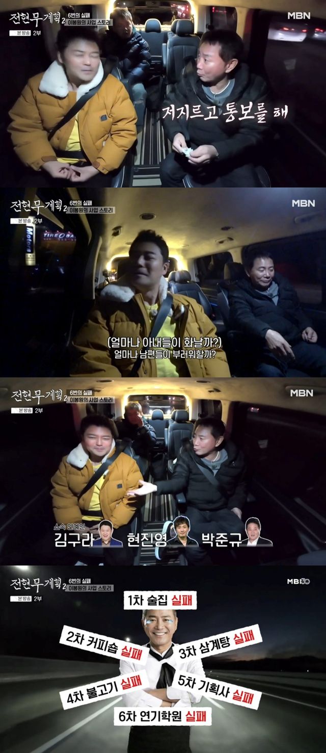 네 번째로 불고기집까지 1년 만에 문을 닫은 후 이봉원은 다섯 번째로 엔터 사업을 시작했다고 설명하면서 "나는 그때부터 김구라가 잘될 줄 알았다. 그리고 현진영, 그 당시에 '쌍칼' 박준규까지 계약했다. 근데 안 되더라"라고 2년 만에 문을 닫게 됐다고 말했다.