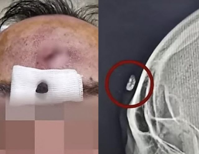 이후 A씨는 미세 골절과 머리 내부 출혈 등을 우려해 인근 정형외과를 찾아 엑스레이를 찍었고 봉합수술을 받은 부위에서 이물질이 발견됐다.