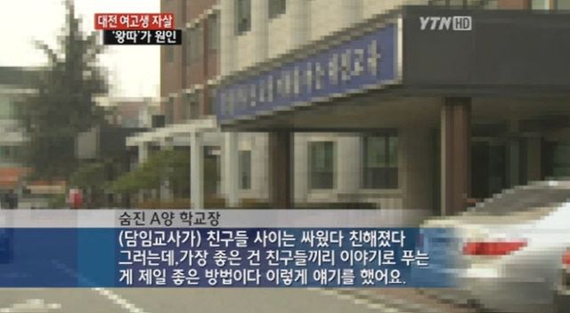 B씨에 따르면 A양은 평소 어울리던 친구들 중 한 명과 다툼이 있었고, 이로 인해 무리에서 왕따가 되고 말았다. 힘들었던 A양이 담임 선생님을 찾아갔지만 “이건 친구들끼리의 문제니 개입할 일이 아닌 것 같다”는 답이 돌아왔다고 한다.