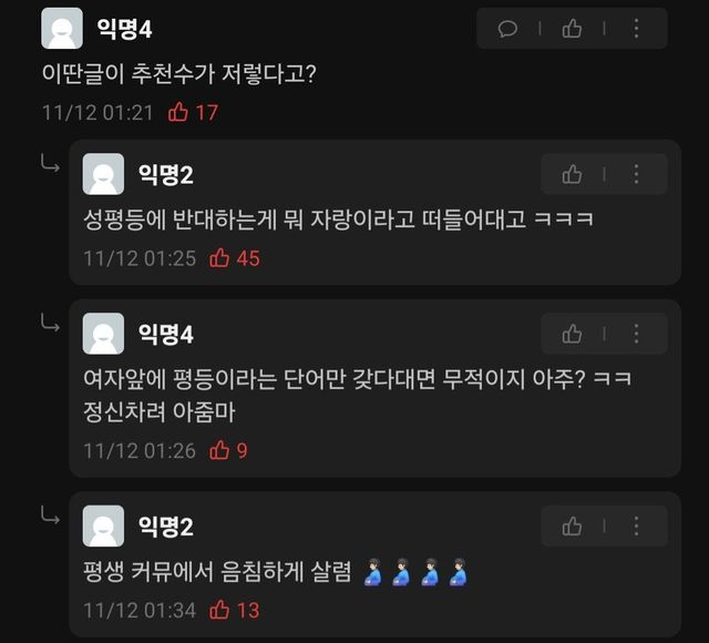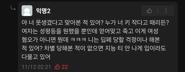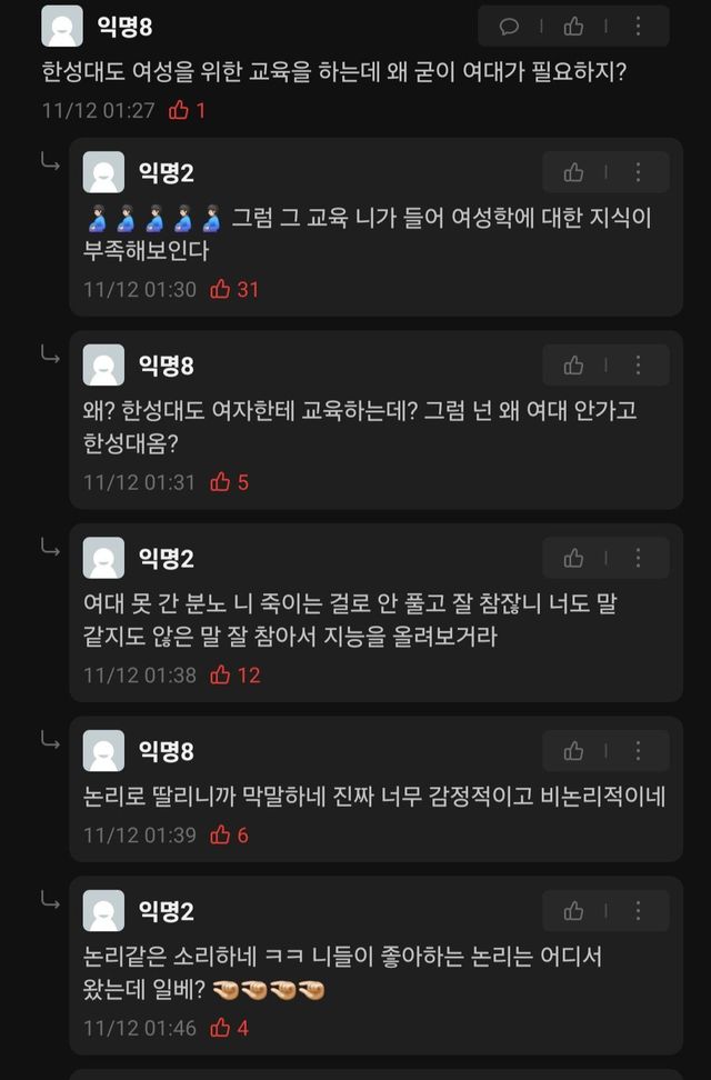 그 손가락과 비하표현이 난무하고 한남 죽이고 싶다도 입갤 ㅋㅋ