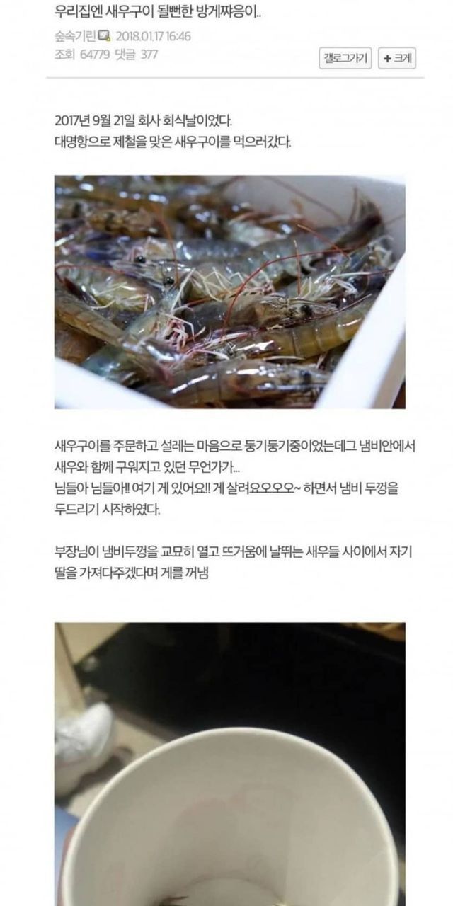 새우구이 먹다가 방게 키운 남자