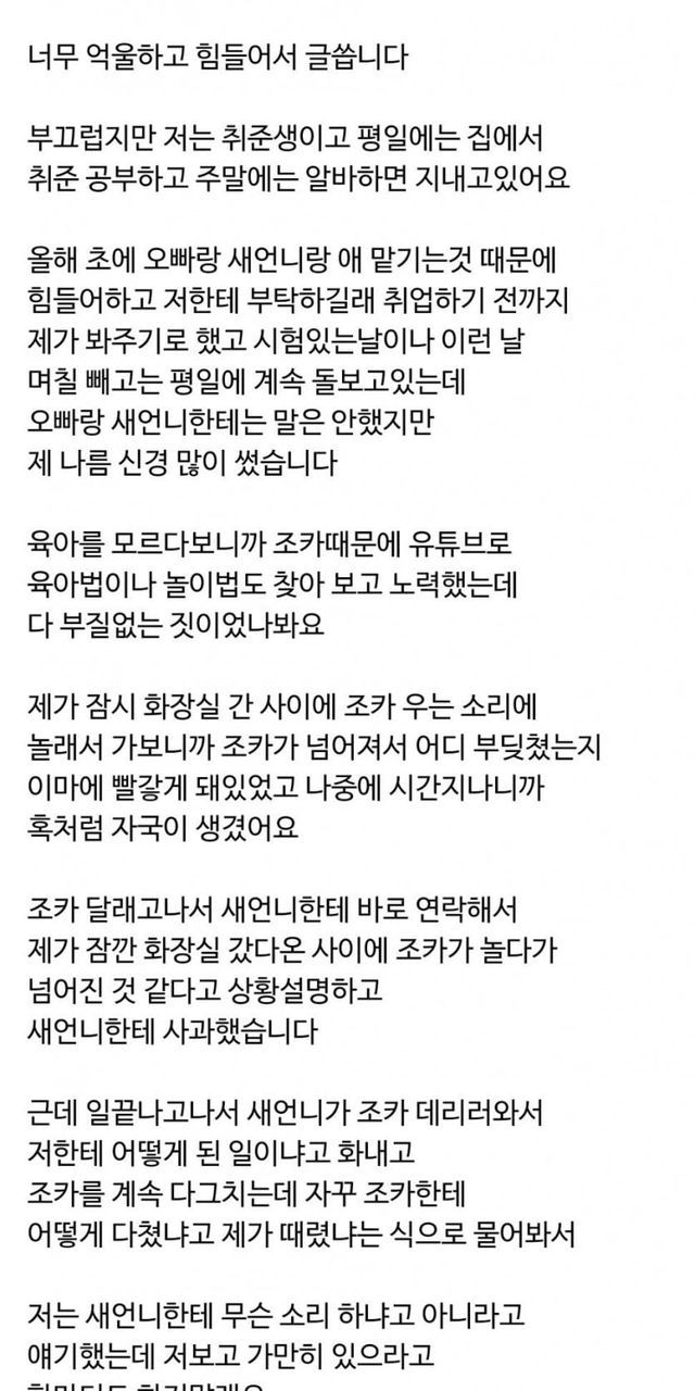조카가 다쳤는데 제가 때린거라고 합니다.