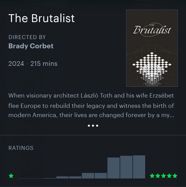 2차 세계대전 종전 후 유대계 헝가리인 건축가가 미국으로 이주하면서 벌어지는 이야기를 그린 영화.
